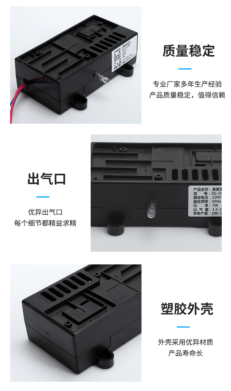 ?一體化整合了臭氧驅動電路、臭氧發生管、氣泵,結構緊湊、設計合理、統配性強